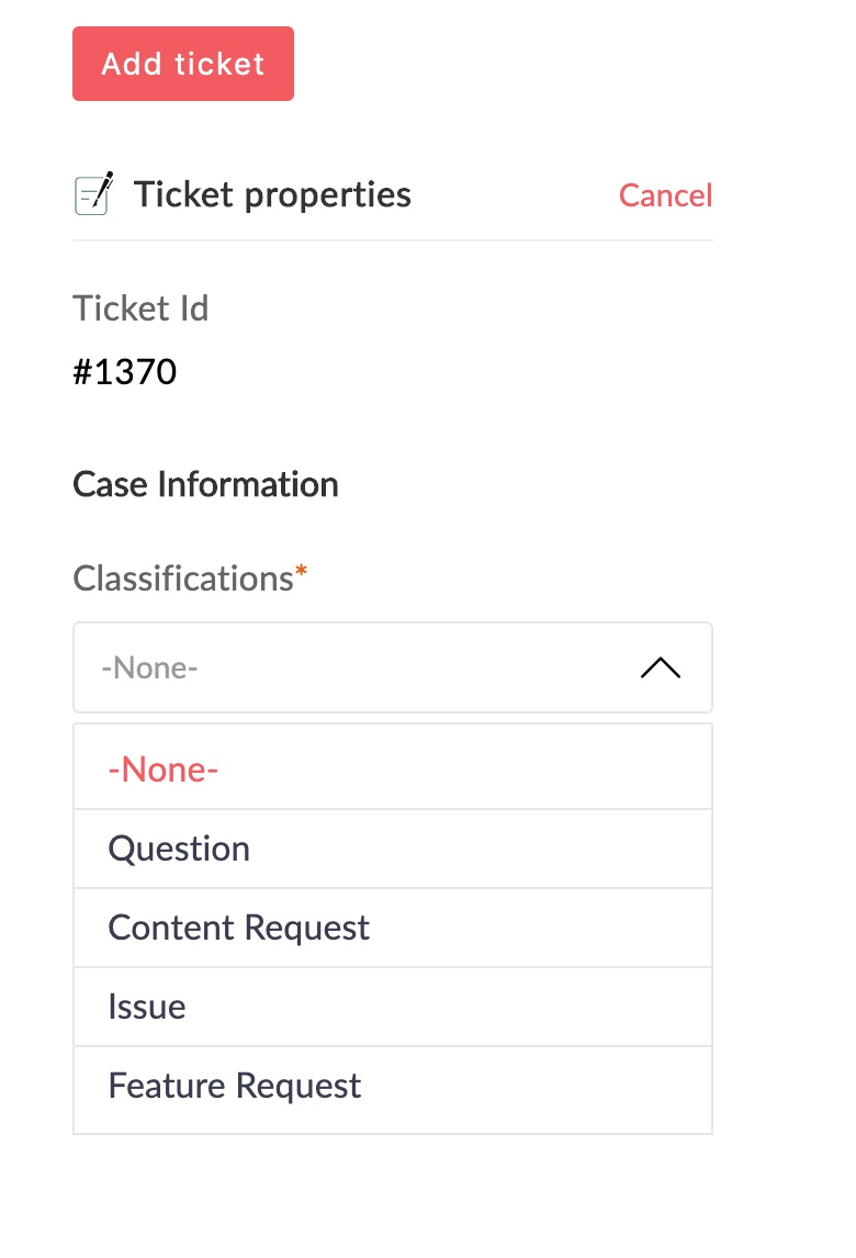 You may also edit your ticket's properties. To do so click on the Edit button next to Add Ticket. Doing this will bring you to the menu below. You will notice that you are only able to change the Classification of a ticket. Classifications are important because they allow us to get a quick overview of incoming tickets.