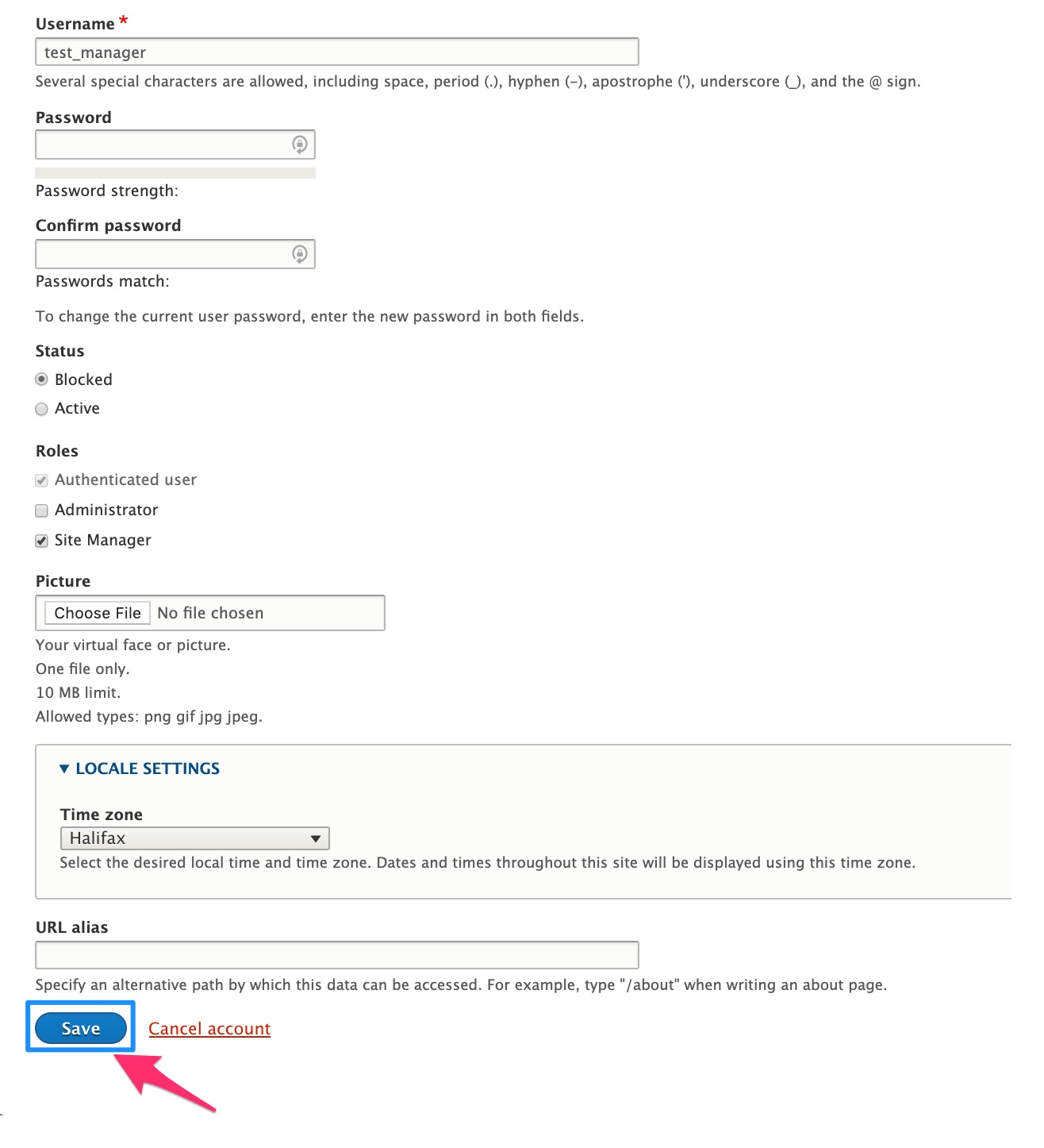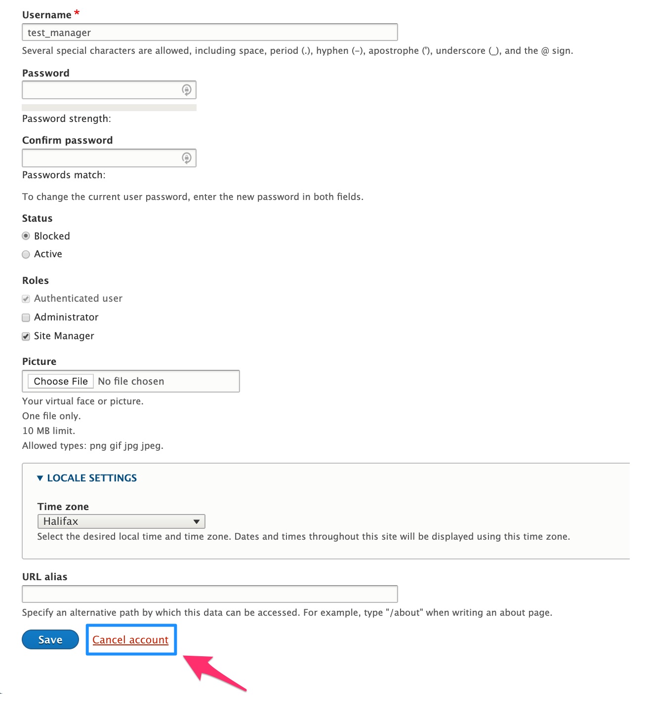 Step 4: If the user account is to be cancelled press the cancel account button. This will delete the user account information.