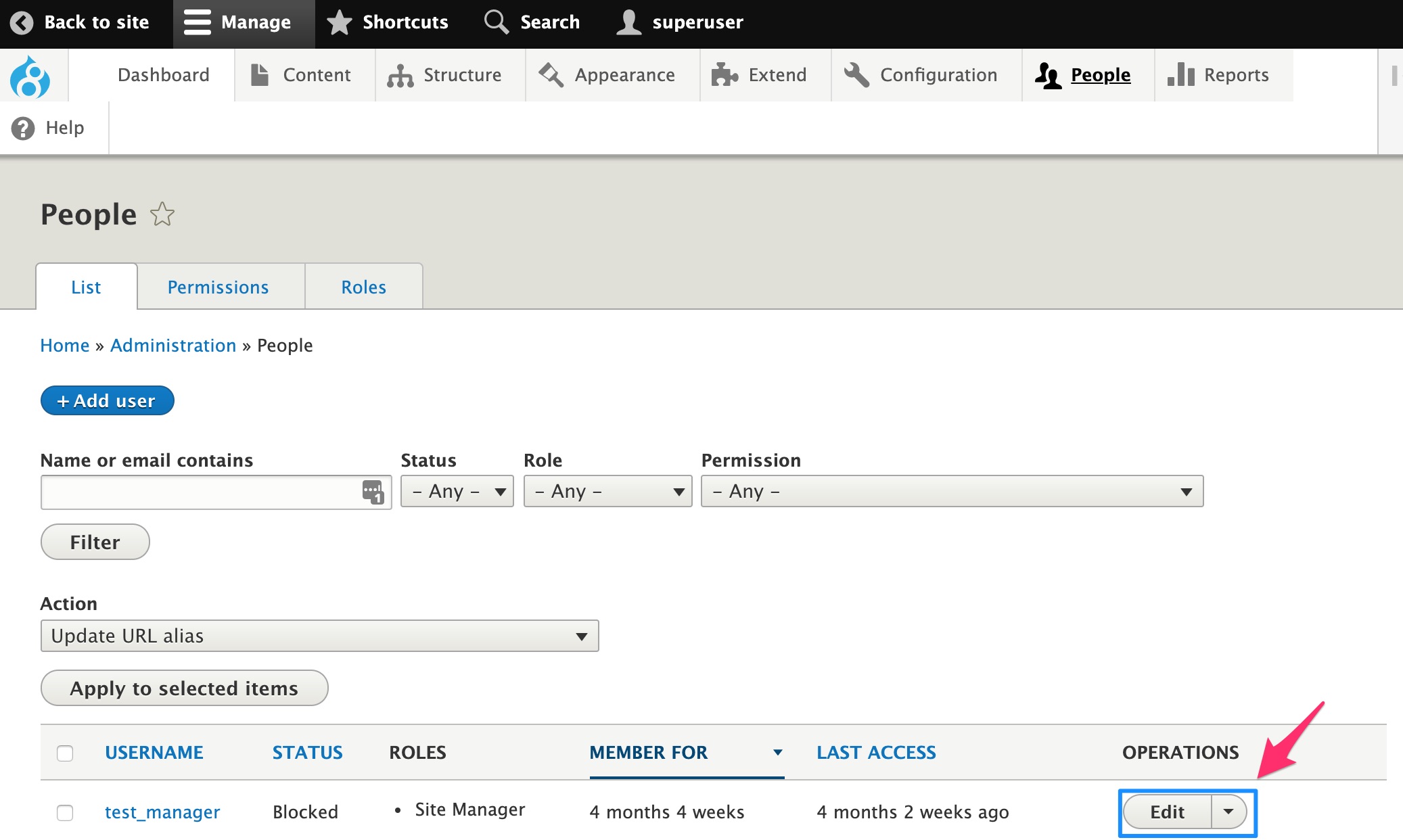 Step 2: Find User Account to be edited. Click the Edit link under the Operation column.