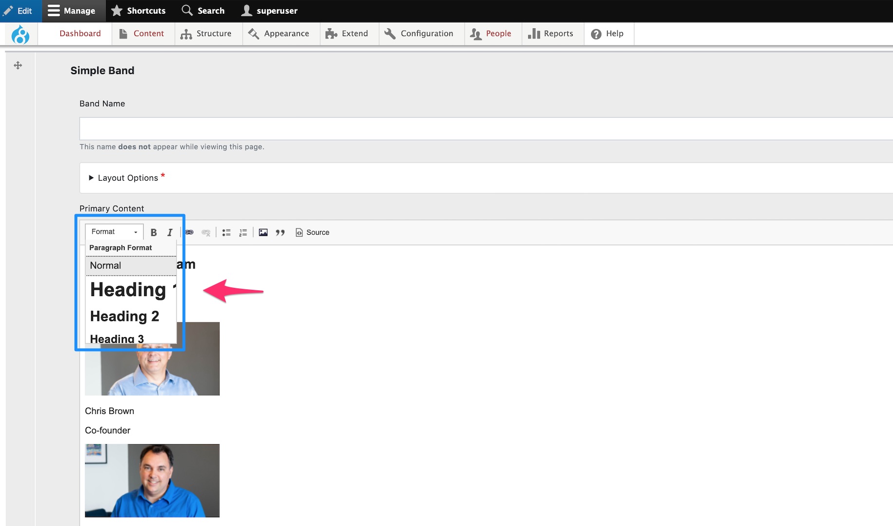 paragraph drop down menu in the Editor.